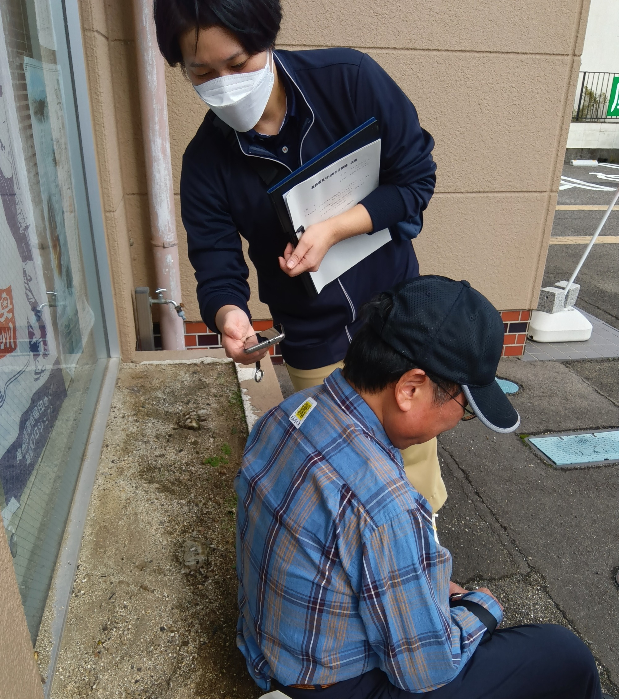 当日は、桑折地区の店舗や事業所、民生委員協議会、町内の介護事業所、チームオレンジの方々にご参加いただき、高齢者に扮した人への声掛け方法や「見守りQRコード」を使用したコールセンターへの連絡方法について訓練しました。