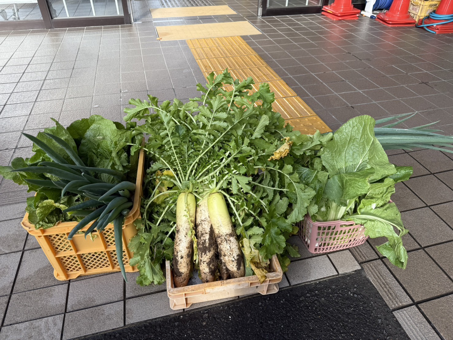 令和7年11月20日、農家のみなさんより新鮮な野菜を寄贈いただきました