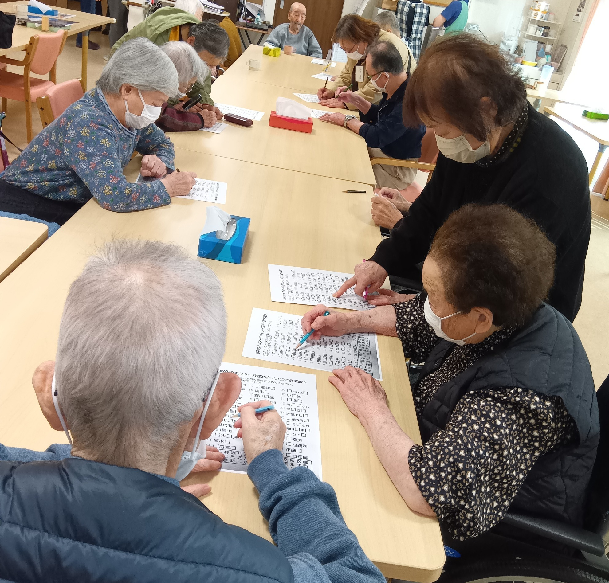 そらいろデイサービス管理者の石幡さんからクイズを交えながら認知症ケアについてお話いただいたり、デイサービスで行っているレクリエーションを体験したり楽しく過ごしました。